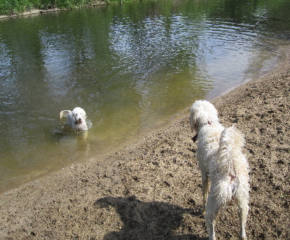 Cheffe hat mir ein paar Tage Auszeit versprochen, damit ich nochmals mit ein paar alten Freunden abhängen kann. Zuerst sind wird dann nach Bielefeld gefahren und haben Mira getroffen. Eine hübsche Doodledame. Hab ihr von meinen Schwangerschaftleiden berichtet und dann sind wir auch noch zusammen baden gegangen. Sie meinte, Wellness ist genau das, was ich jetzt brauche und hat gleich noch eine Schlammpackung aufgelegt. Da ich mir nicht sicher war, ob meine Welpen den Schlamm vertragen, habe ich es nur beim Baden belassen. War sehr anstrengend, aber hat echt gut getan!